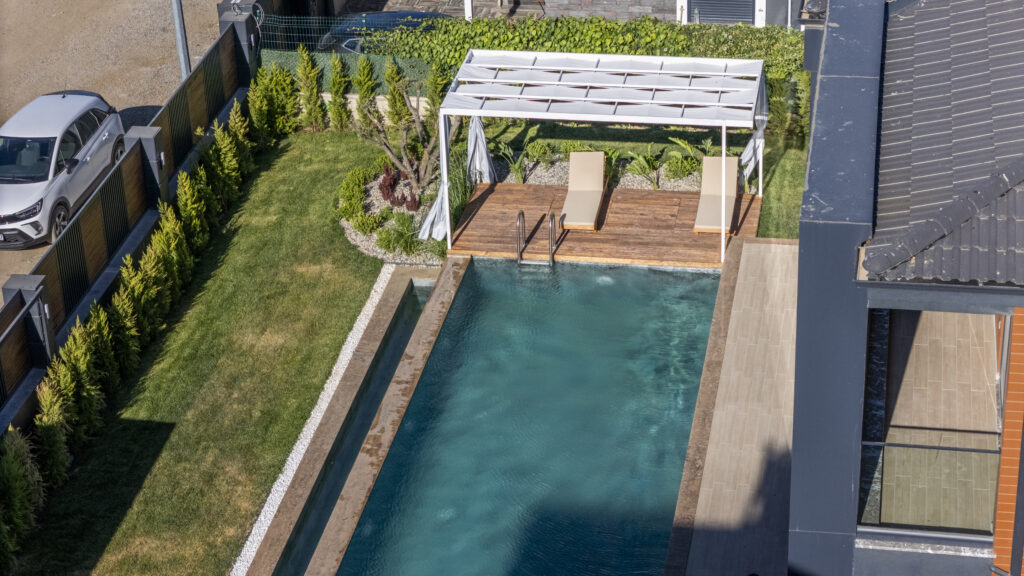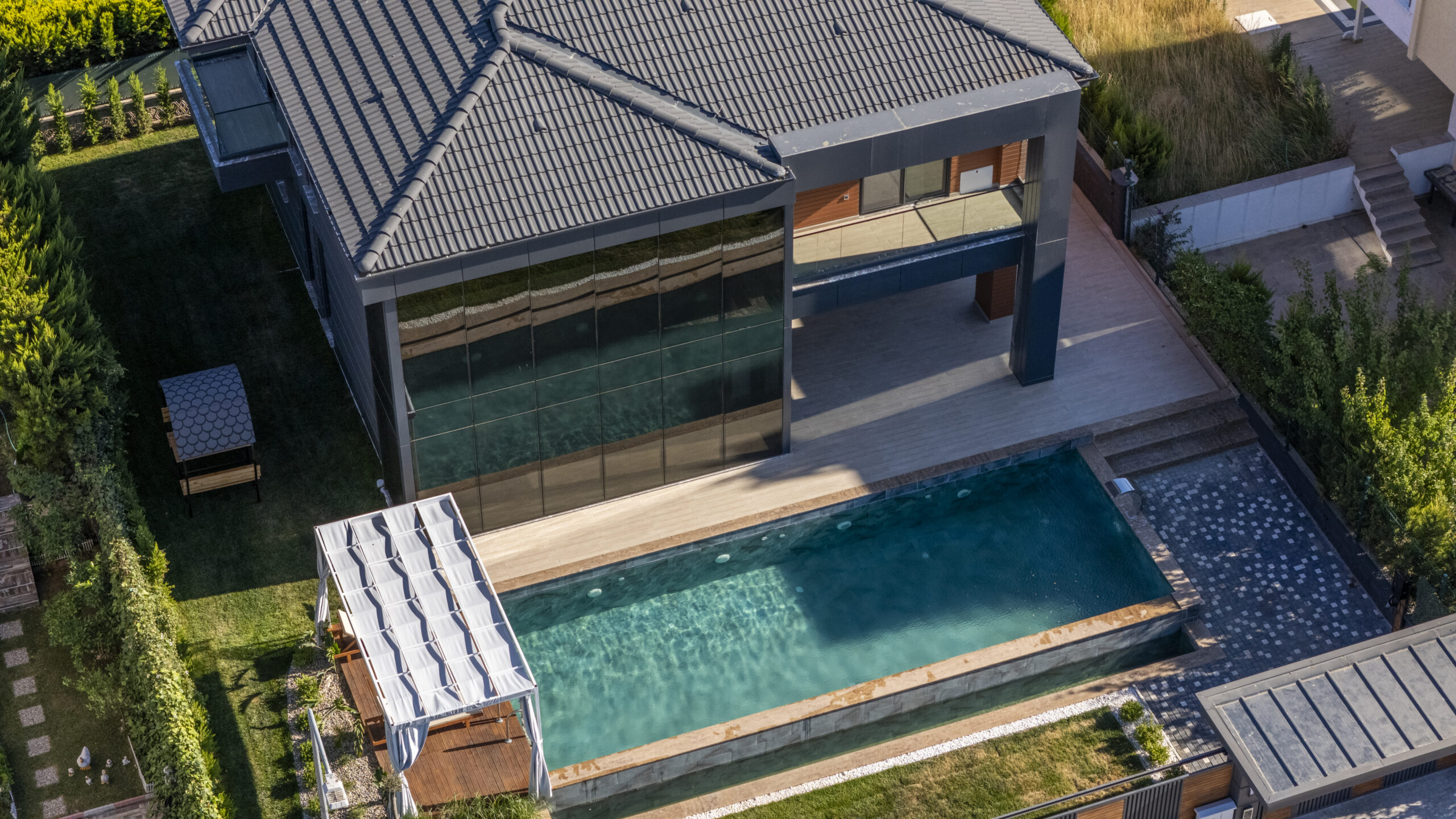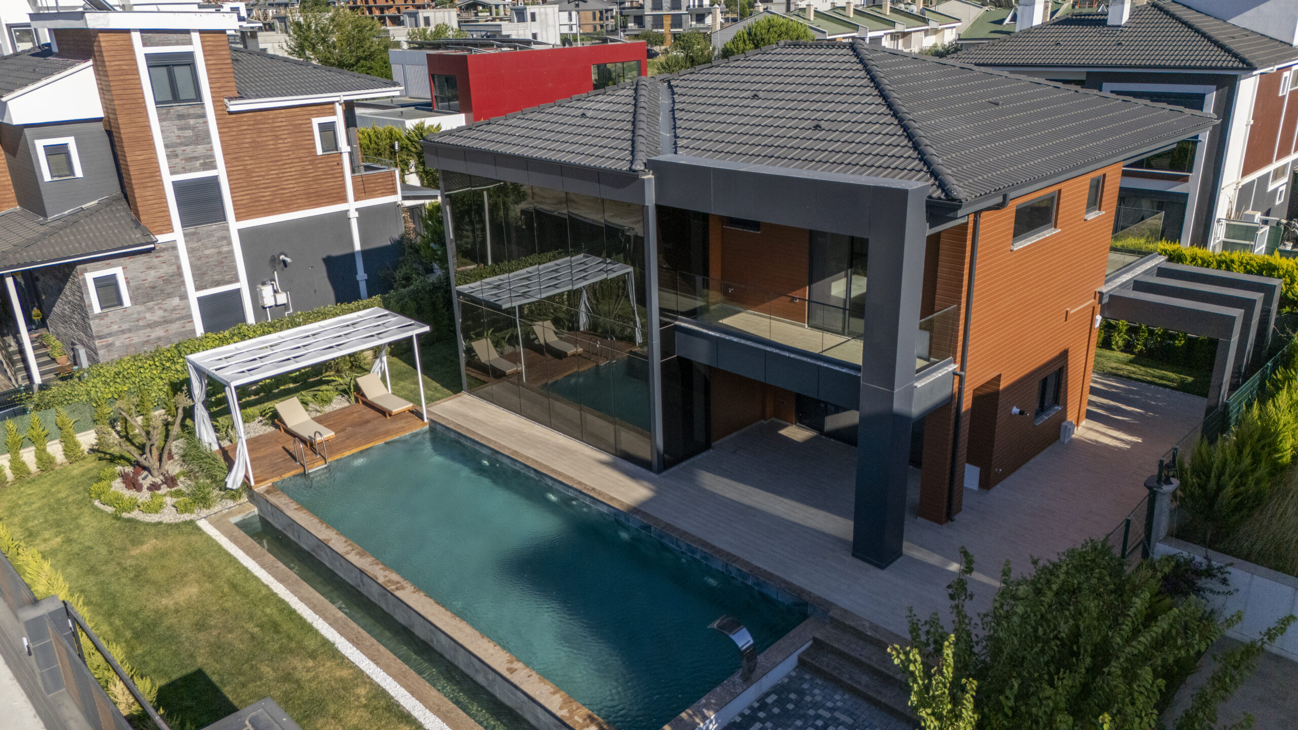 Geniş ve ferah yaşam alanlarını tamamlayan 50 m² veranda ve 48 m² özel yüzme havuzu, keyifli anlara ev sahipliği yaparken, kapalı otopark ve elektrikli şarj istasyonu modern hayatın ihtiyaçlarını karşılar.